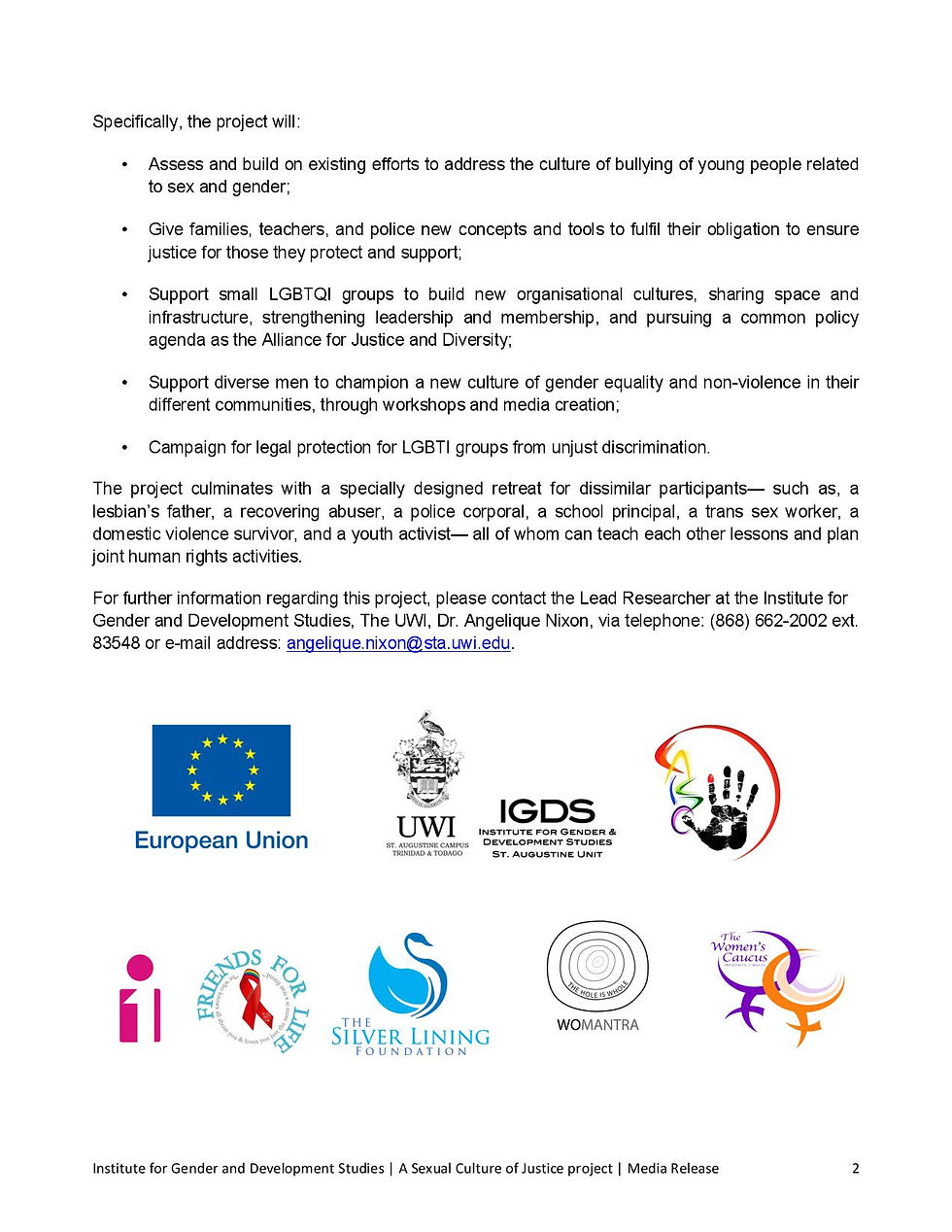 MEDIA RELEASE: Institute for Gender and